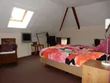 Das lila Zimmer ist ein komfortables Zimmer an der Vorderseite des Hauses. Das Zimmer verfügt über 2 Boxspring Betten von guter Qualität und hat ein Waschbecken, einen Kleiderschrank, eine Sitzecke, TV und einen Sessel + Leselampe. Das Zimmer ist geräumig und atmet eine angenehme Atmosphäre und ist mit ruhigen, natürlichen, lila Akzenten verziert.